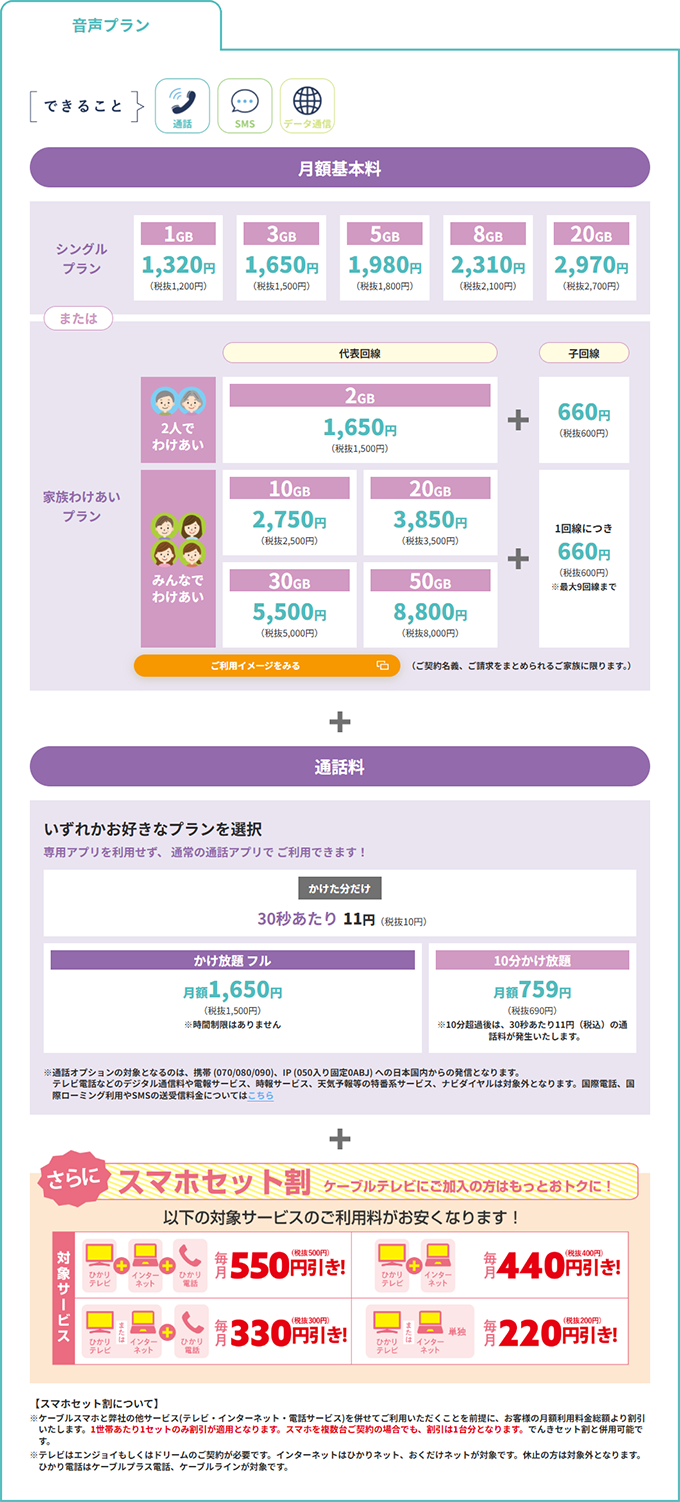 国際電話、国際ローミング利用やSMSの送受信料金についてはこちら
